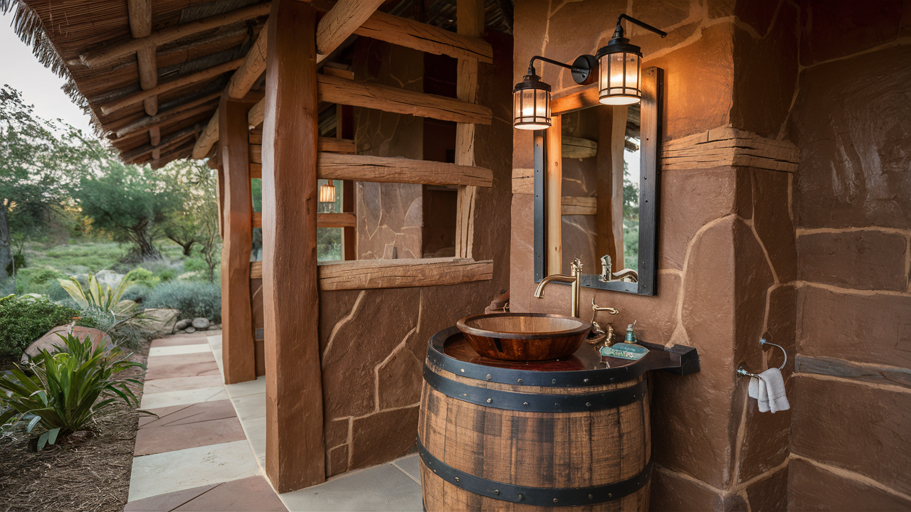 Use old wood and natural stone to bring a warm, earthy feel to your bathroom.