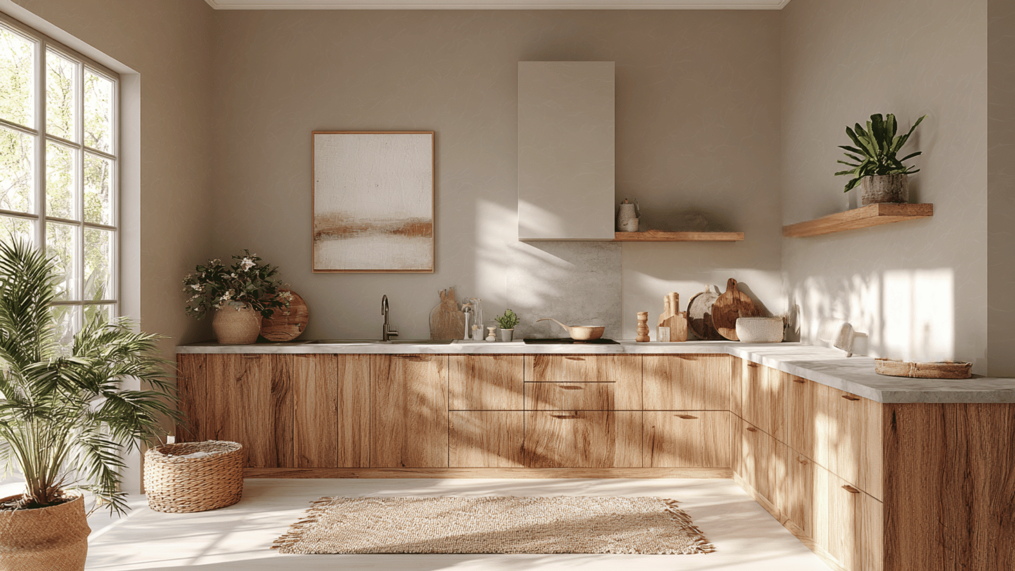 Its warmth and balance make it ideal for cozy, organic kitchen designs that embrace nature while keeping a sense of classic modernity and comfort.