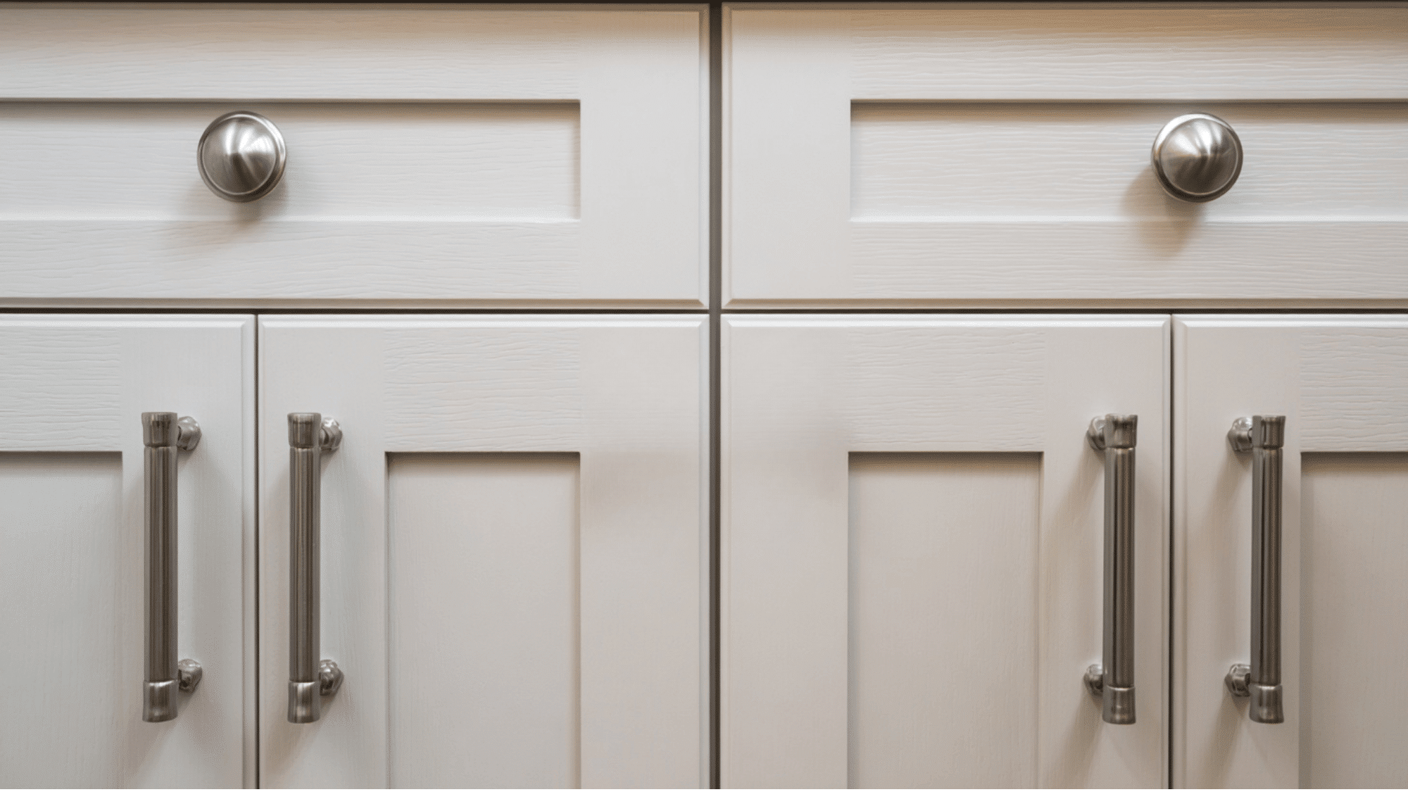 - Using identical placement for different-sized drawers and doors.