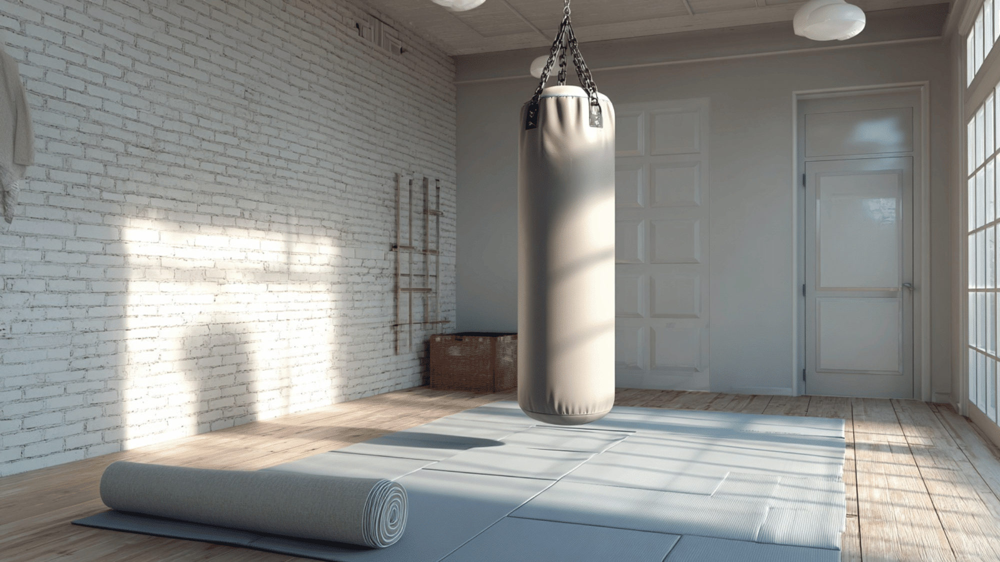 Built for intensity and endurance, this gym includes heavy bags, speed bags, padded flooring, and wall-mounted gloves. Motivational posters and bold lighting amplify the fight-club energy.