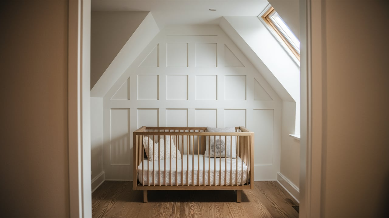 Board and batten give the nursery a clean, classic look that never goes out of style. This wooden trim design adds texture and depth to the wall without being too bold.