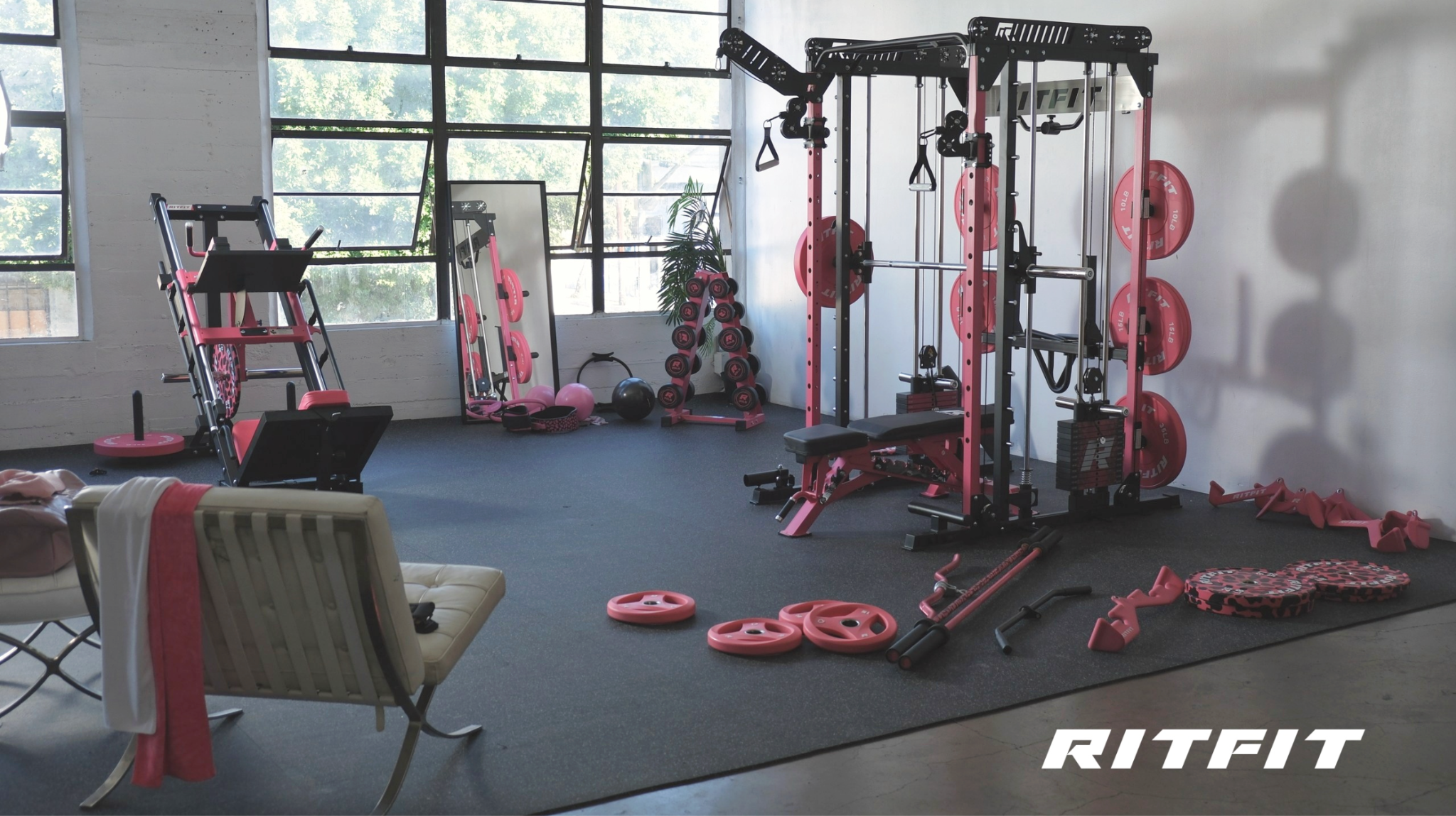 • How RITFIT can help: The M1 Smith Machine’s sleek black frame anchors your space while colorful RITFIT accessories add urban energy.