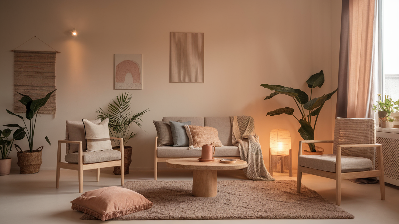 Even one wooden table or jute rug can change how the room feels. Natural pieces help create a relaxed home that looks simple and easy to live in.