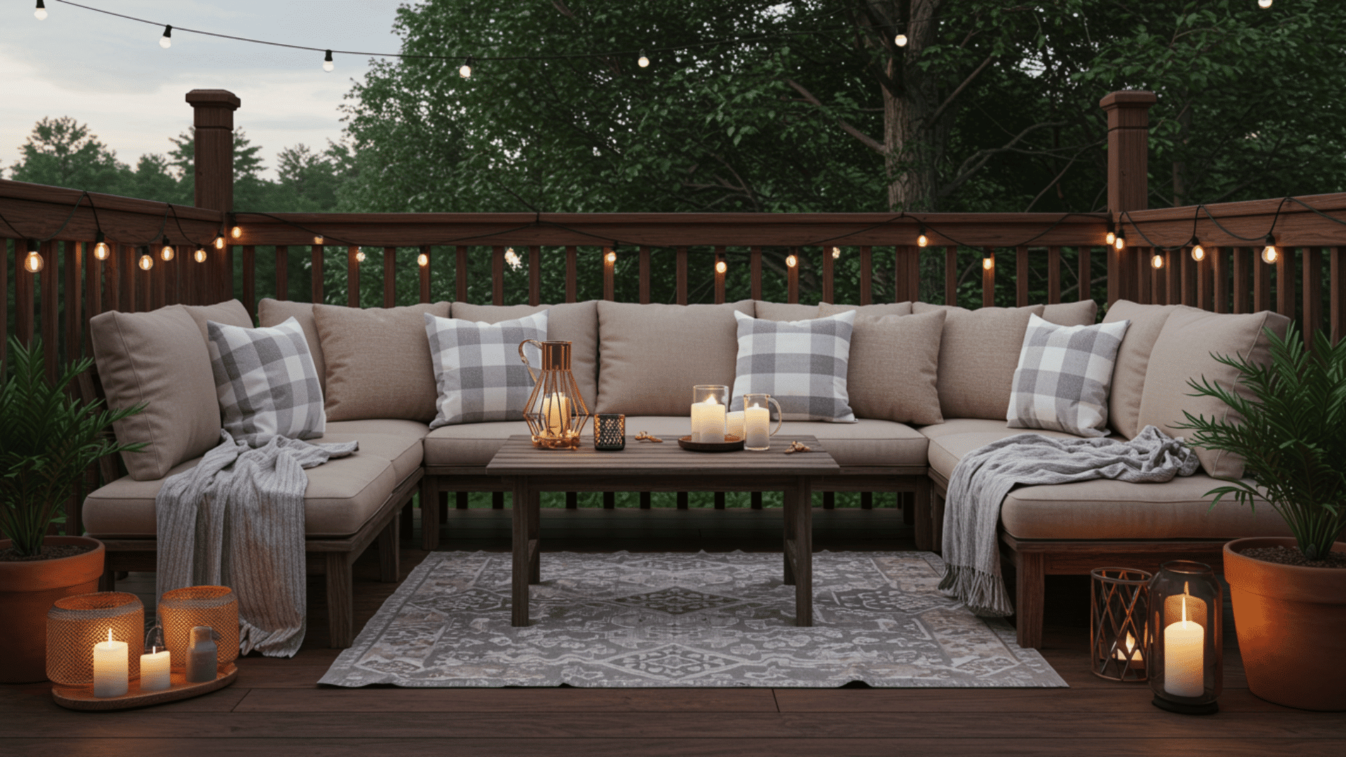 Pillows offer an affordable way to refresh your deck’s appearance seasonally, switching from bright summer palettes to warm autumn tones throughout the year.