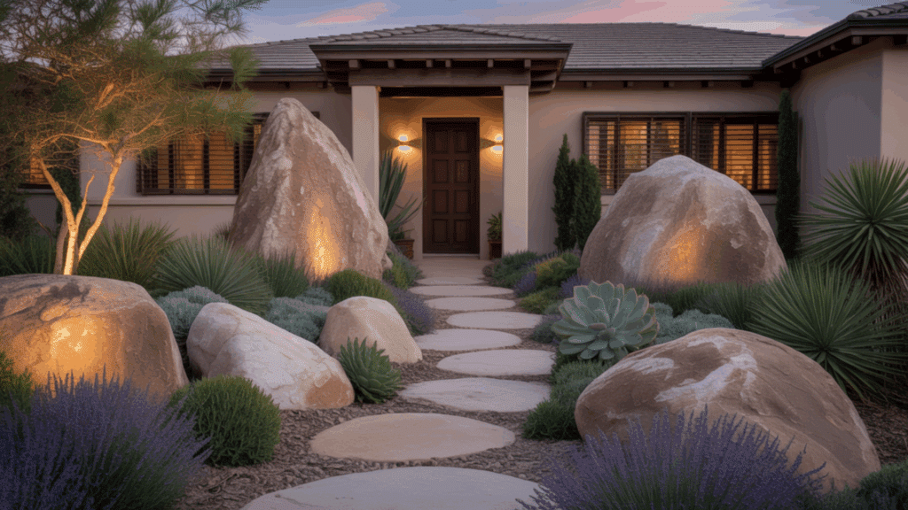 This guide is for you if you’re looking for ideas on how to incorporate big rocks into your front yard.