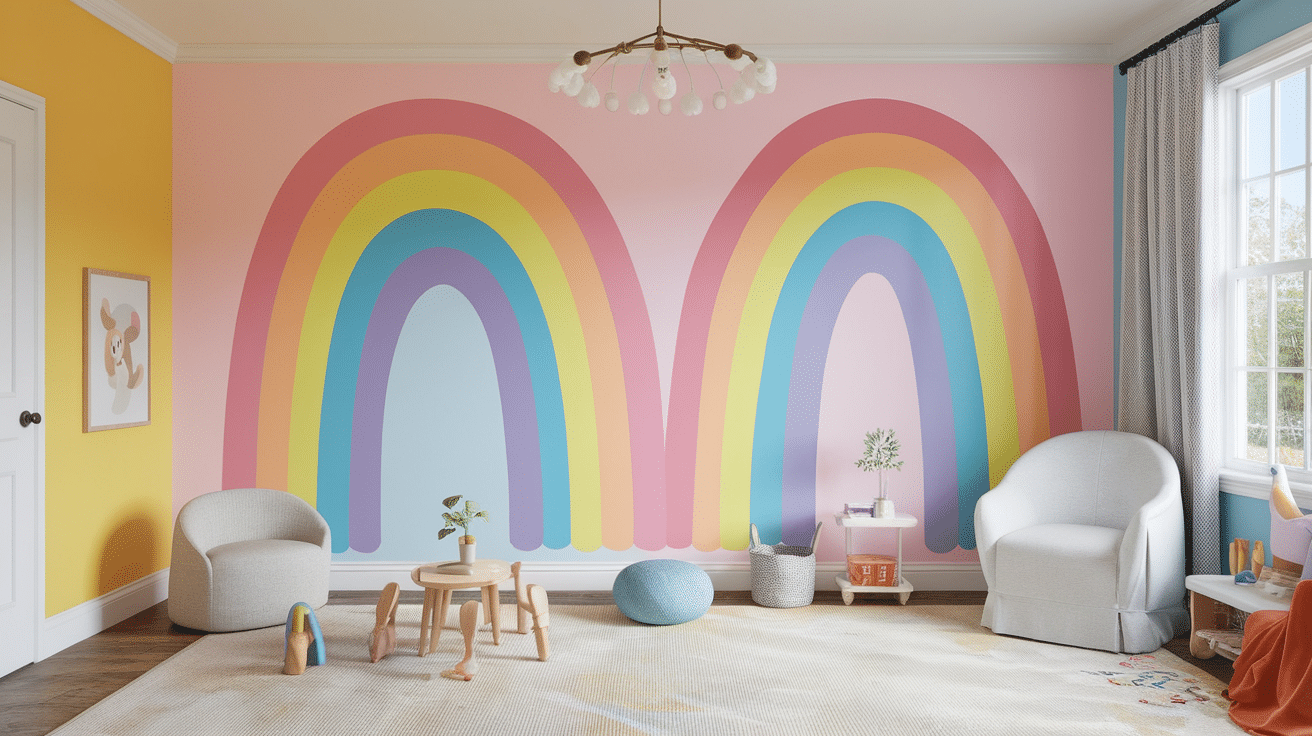 Rainbow arches painted on your walls instantly brighten your room and lift your mood. These colorful arches are cheerful and fun, making them perfect for children’s bedrooms or play areas. Even adults enjoy the happy feelings these bright colors create.