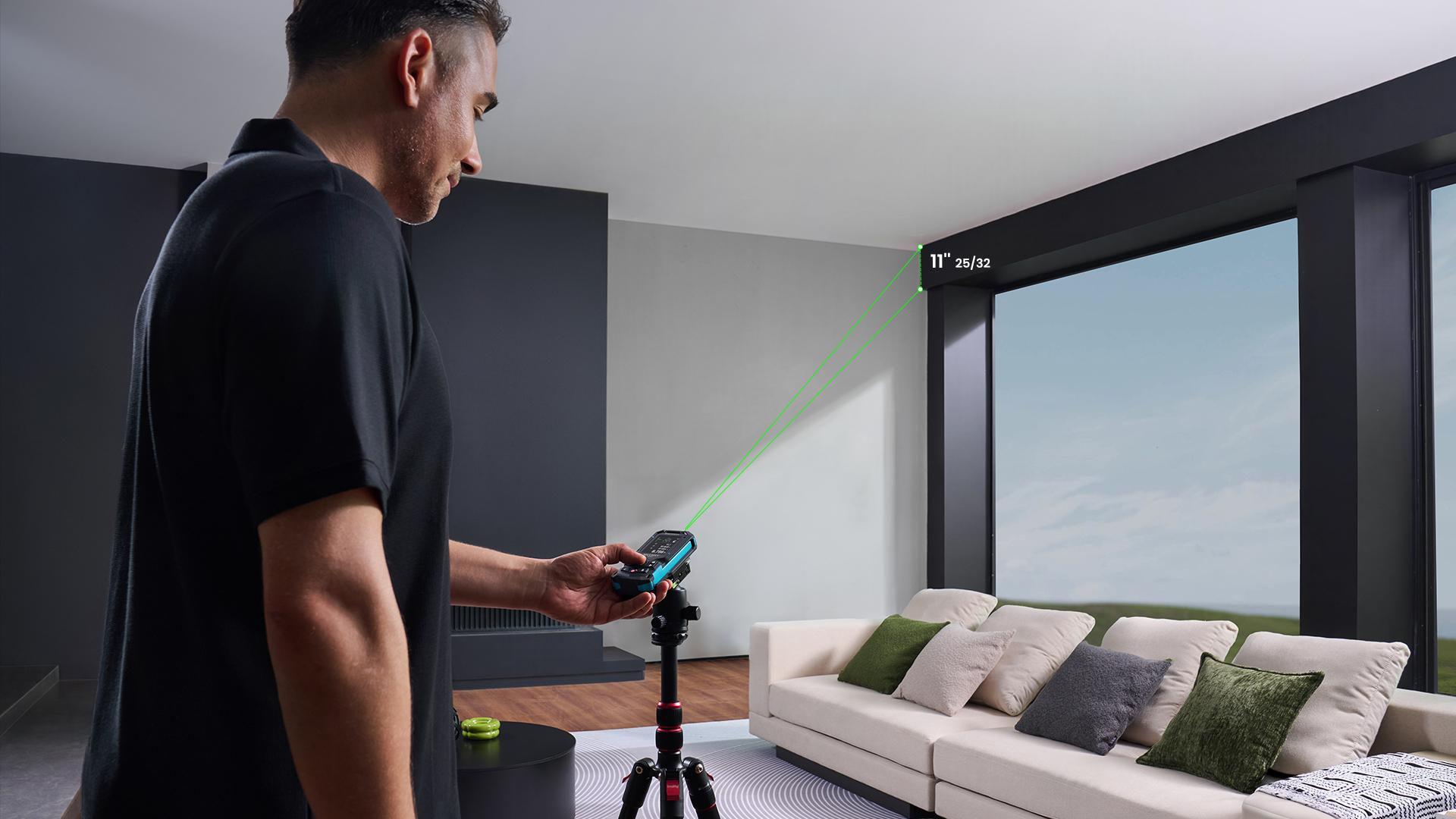 Ceiling heights, diagonals across a room, distances over furniture or fixtures — these are the kinds of measurements that usually mean dragging out a ladder, finding a helper, or wrestling with a tape measure at awkward angles.