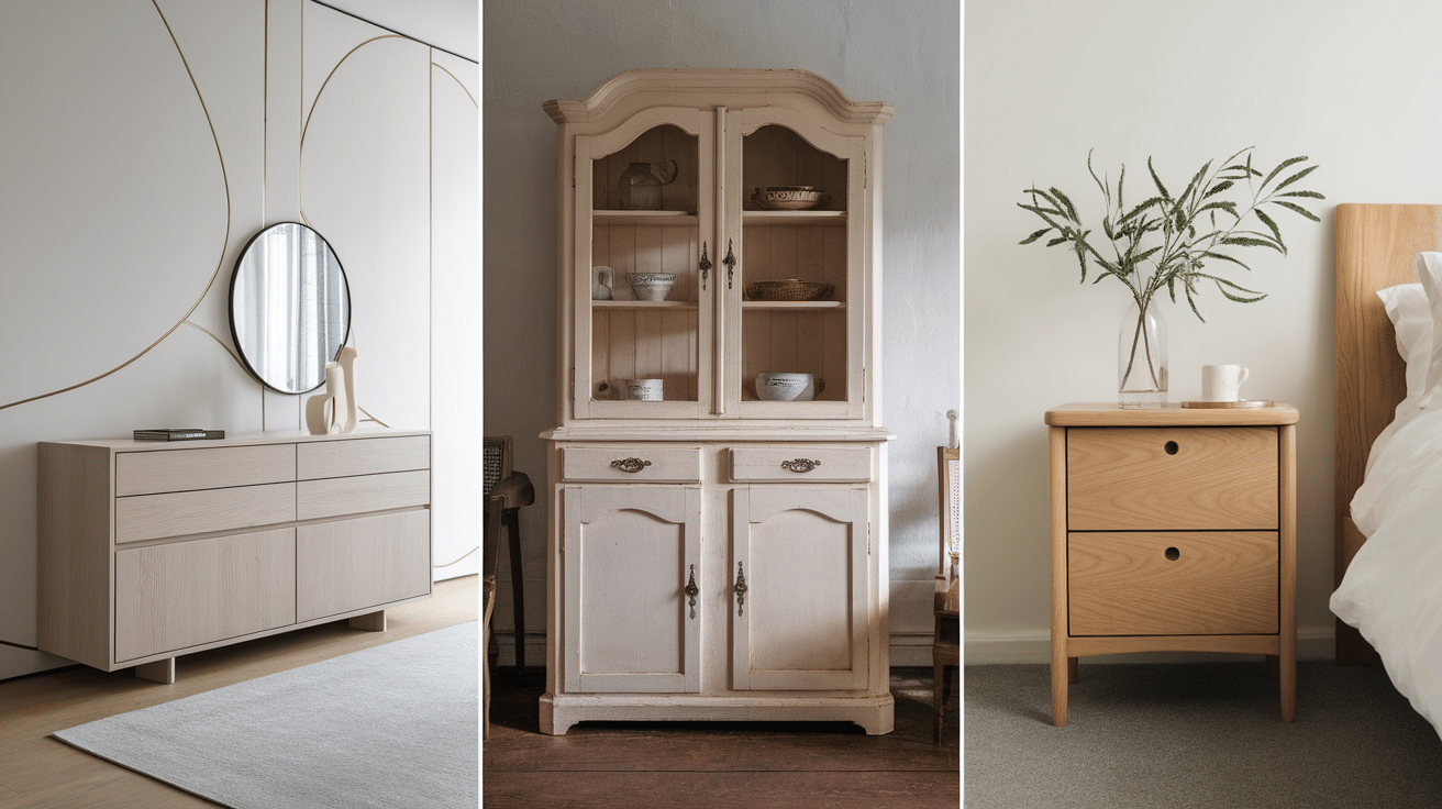 Light wood cabinets and dressers add warmth without feeling heavy or dark.