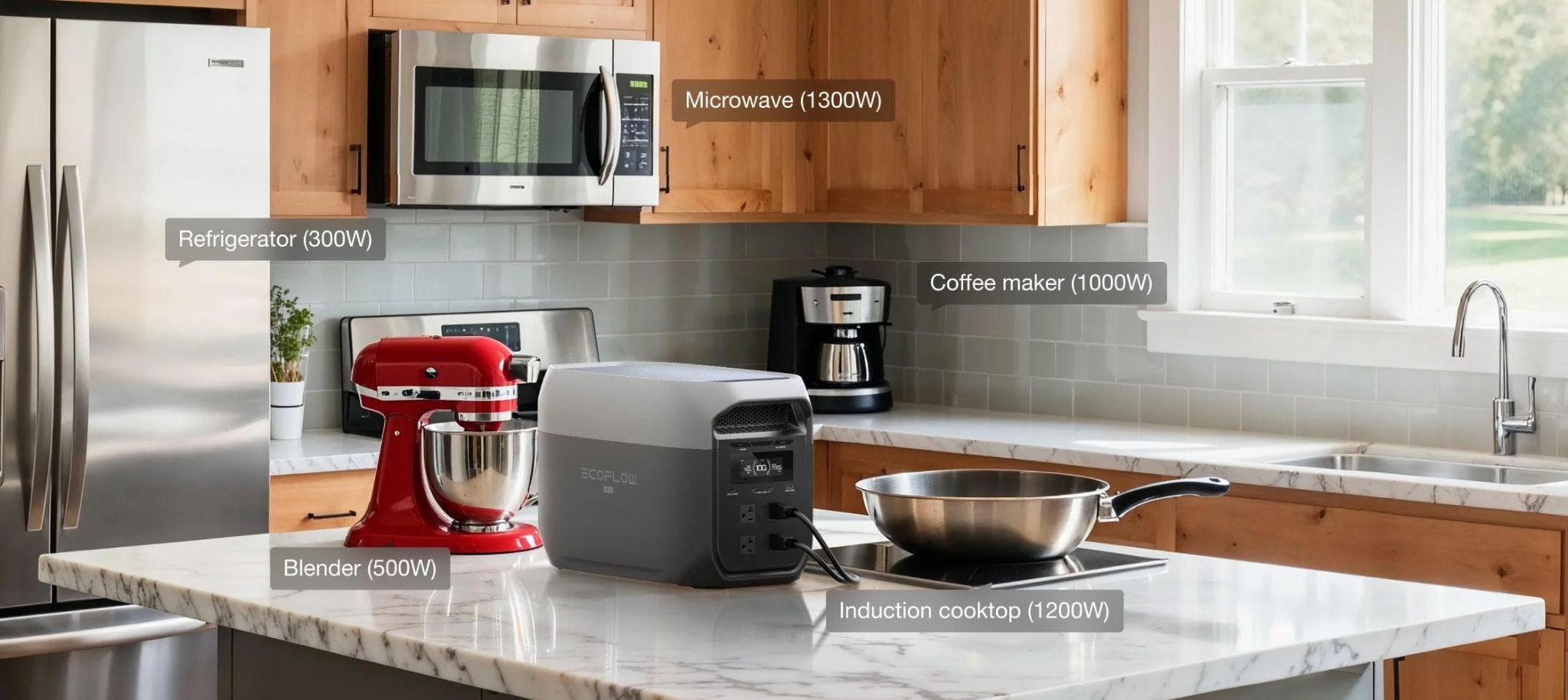 To comfortably meet this demand, choose a portable power station with at least 1,500 Wh capacity—or 2,000 Wh if you want backup for cloudy days or extra devices.