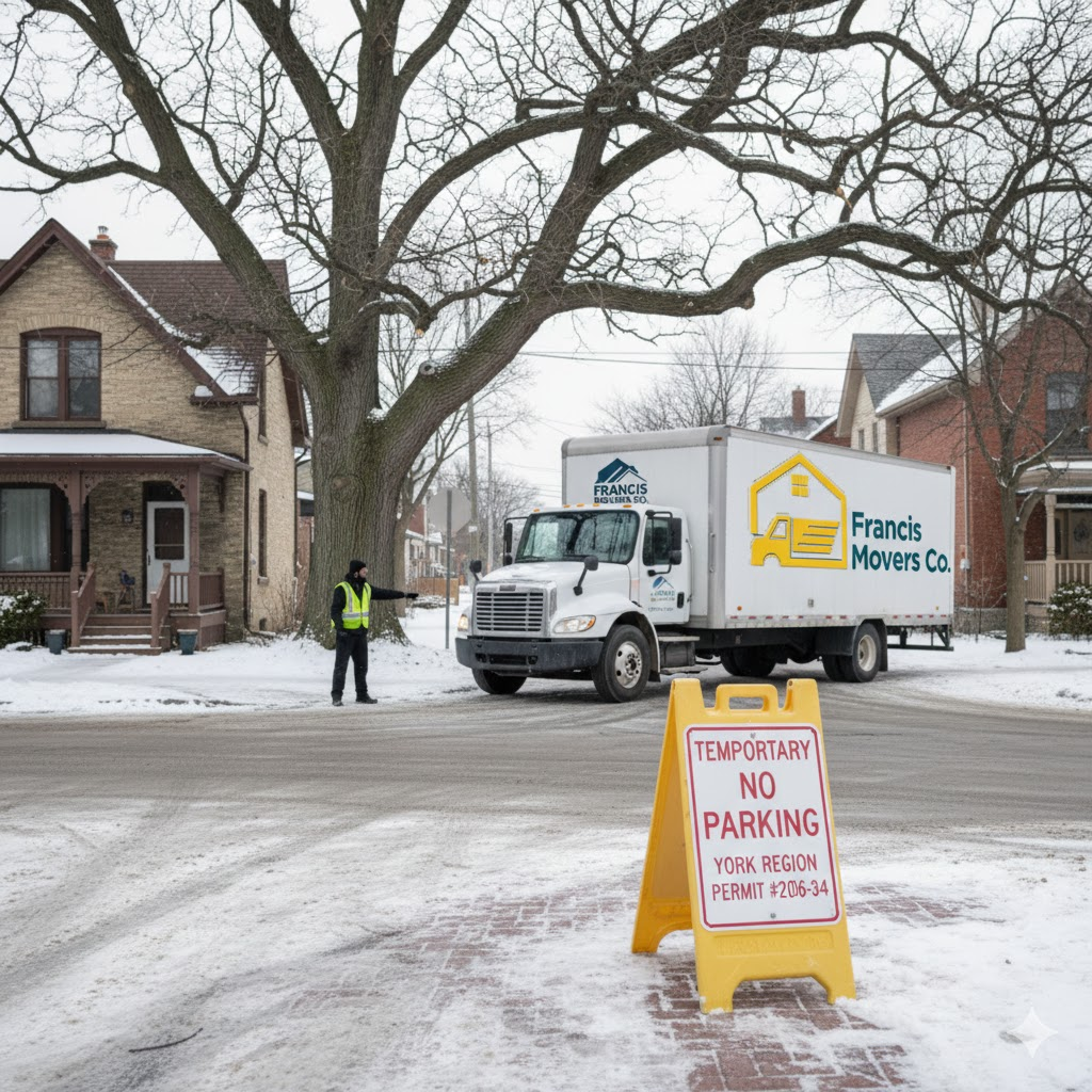 Parking bylaws are strict and unforgiving. York Region requires temporary no-parking signs and permits filed 72 hours in advance on virtually every residential street. Forget the paperwork and you’re looking at $250+ tickets per truck plus possible towing. The best Richmond Hill moving companies file these permits automatically and carry printed copies in every cab.