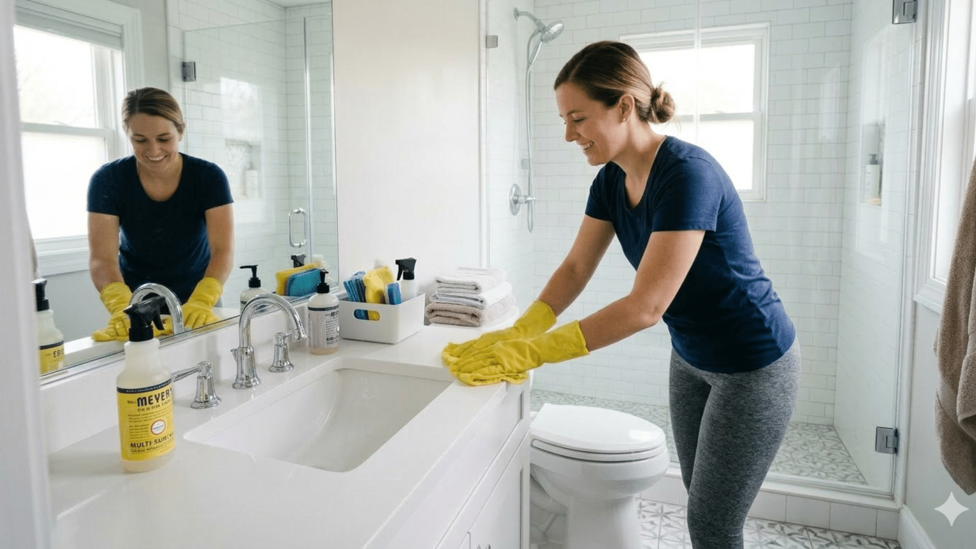 Focusing on key areas like the sink, toilet, and mirror helps you get quick results without spending too much time.