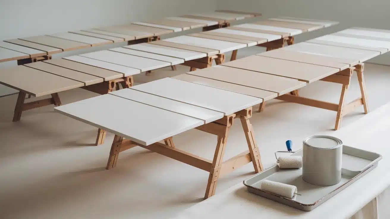 Start by applying a coat of primer. This is important if you’re using raw wood. Primer helps the paint stick better and gives a smoother finish.
