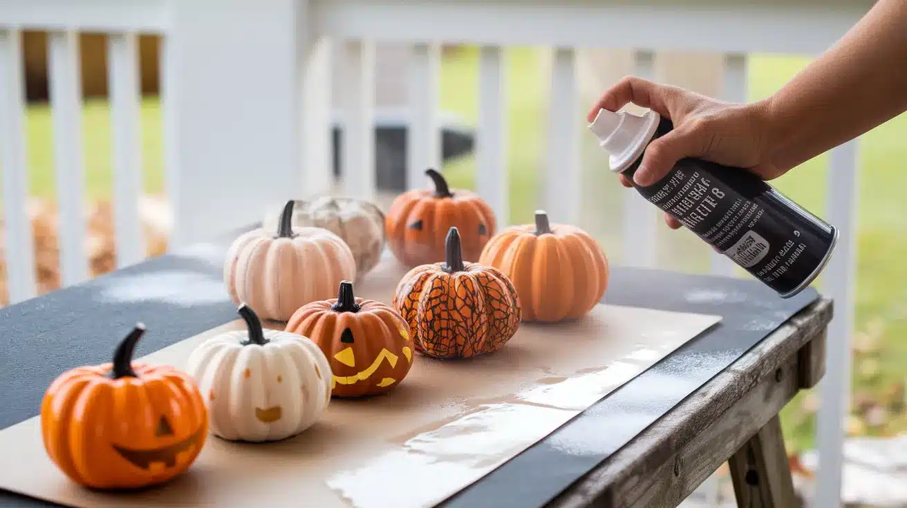 Once all the paint is completely dry, spray or brush on a clear sealer. This protects your design and makes real pumpkins last longer.