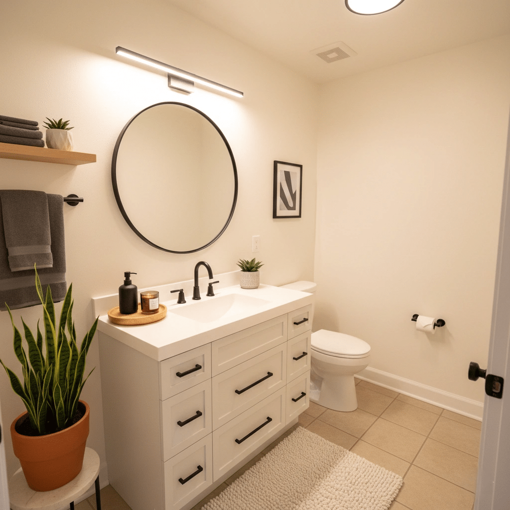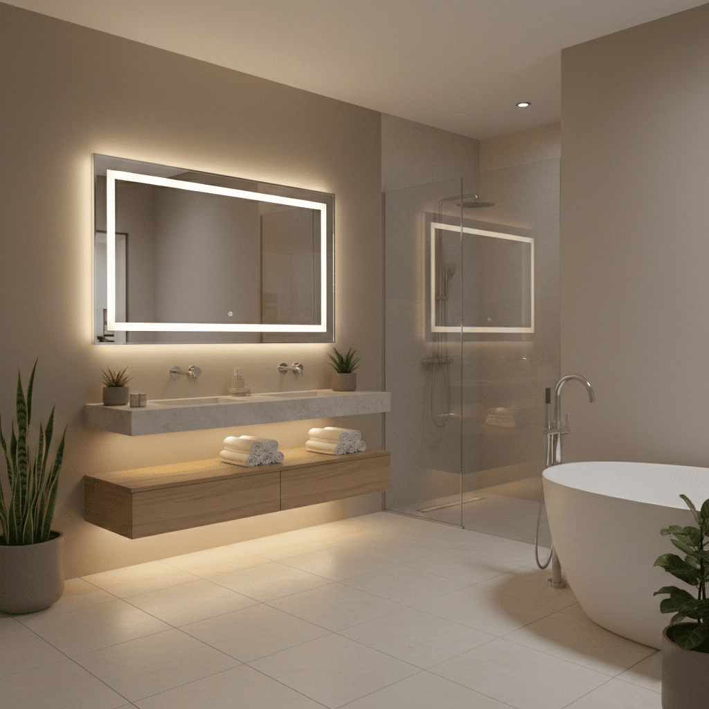 LED mirrors in particular are a massive upgrade because they make the bathroom look cleaner and more modern the second they’re mounted. They also add a subtle luxury-hotel vibe without overwhelming the space.