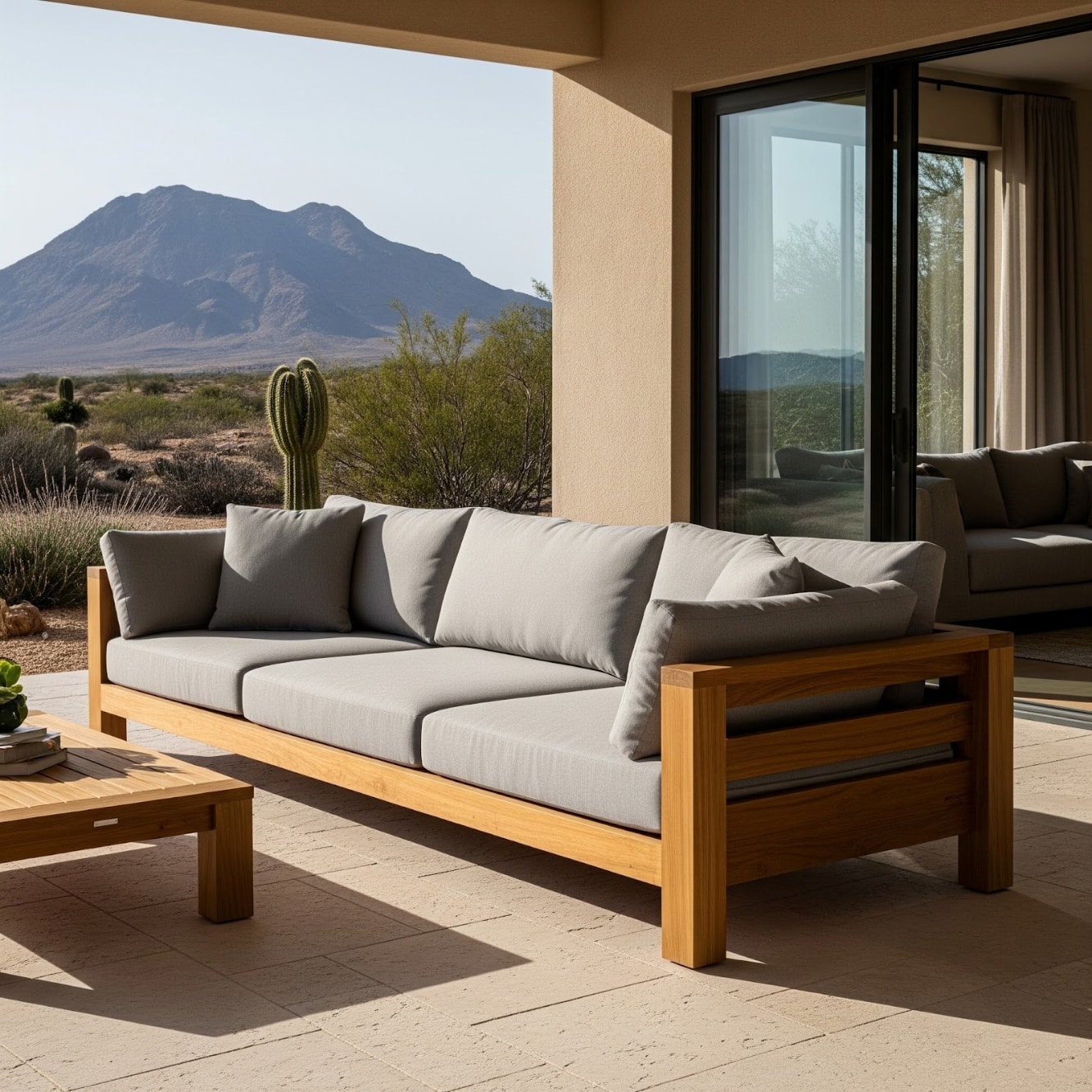 Similar story to Arizona: UV and dust are the main concerns. Teak holds up well, but cushion fabrics matter too—use high-performance outdoor textiles and store cushions during dust storms.