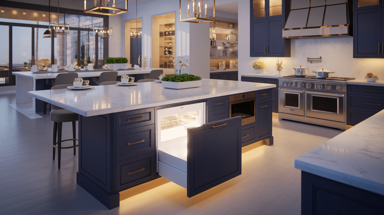 A microwave built into a kitchen island provides both convenience and style. It helps keep the kitchen organized while improving accessibility for everyone in the household.