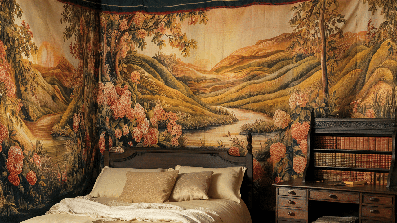 Tapestries and fabric wall hangings bring texture and color to your traditional bedroom.