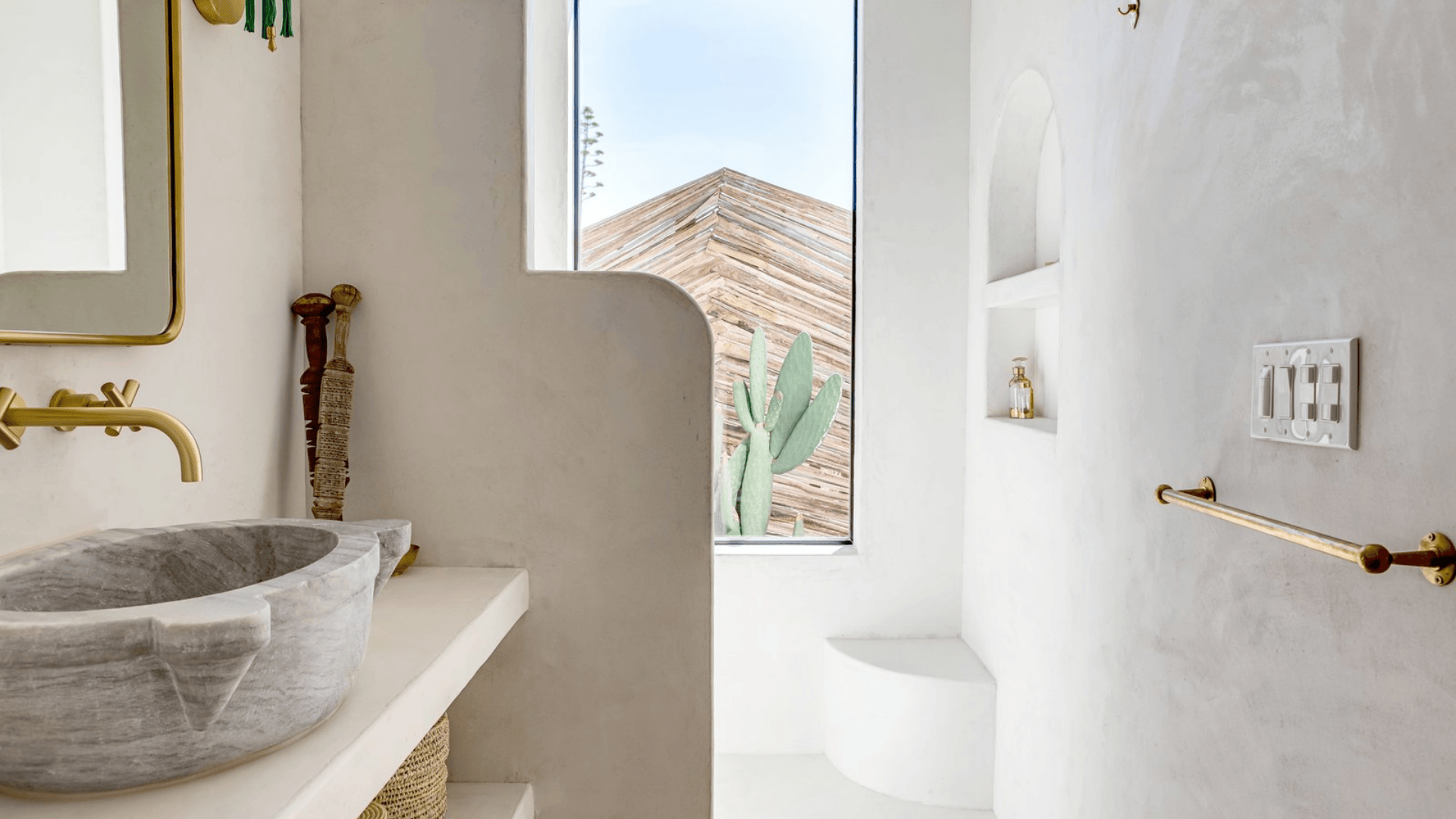 And compared to microcement or Venetian plaster, it feels softer and more natural, giving a warm, spa-like appearance, although it requires more care to maintain its moisture resistance.