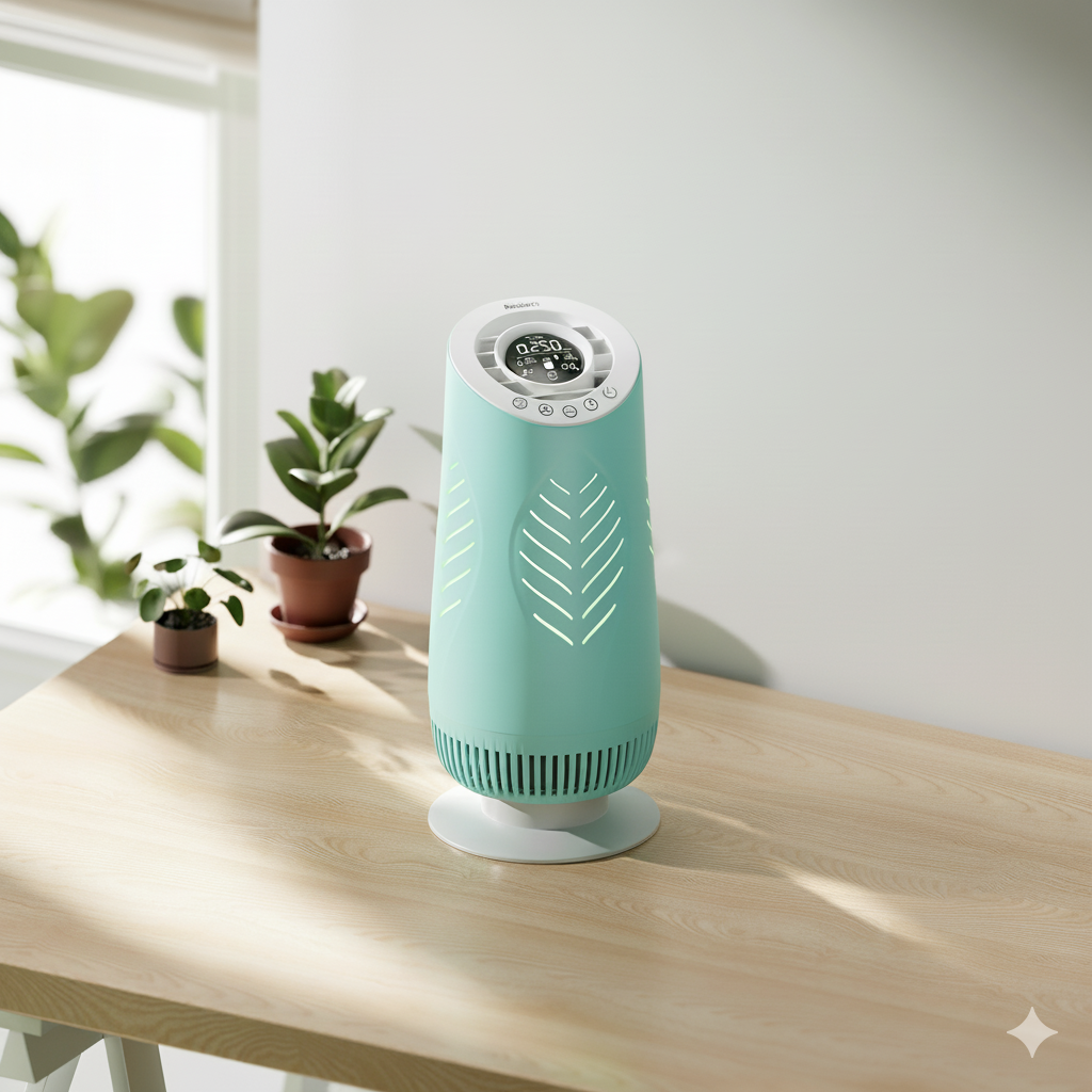 Inspired by this idea, the Resiners Purair Resin Air Purifier combines minimalist design with professional purification technology. Its body features nature-inspired leaf patterns and a soft mint-green finish, evoking a sense of freshness and environmental harmony. It blends easily into any style of home décor, appearing more like a design object than an appliance.