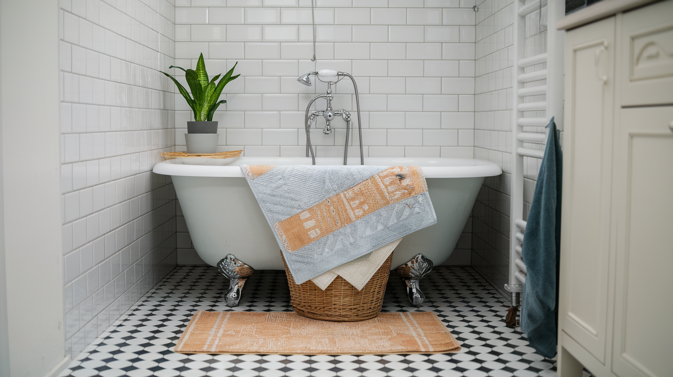 If you use a bold rug, balance it out with plain towels or walls. That way, the space doesn’t feel too busy or cramped.