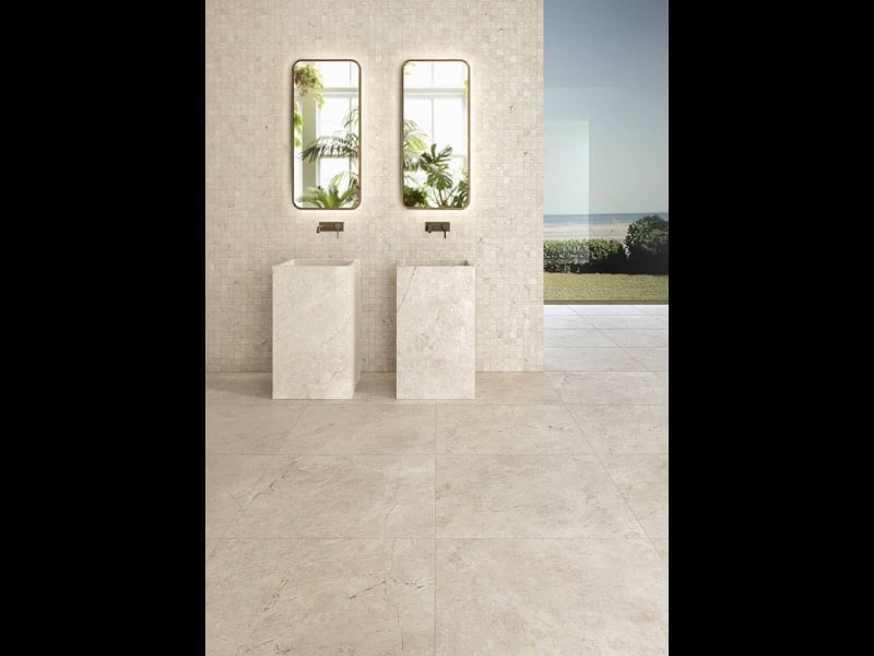 Bathrooms are high-moisture environments, often exposed to condensation, direct water contact, and thermal fluctuations. Porcelain tiles are ideally suited for these conditions thanks to their extremely low water absorption rate, dimensional stability, and overall resistance to humidity.