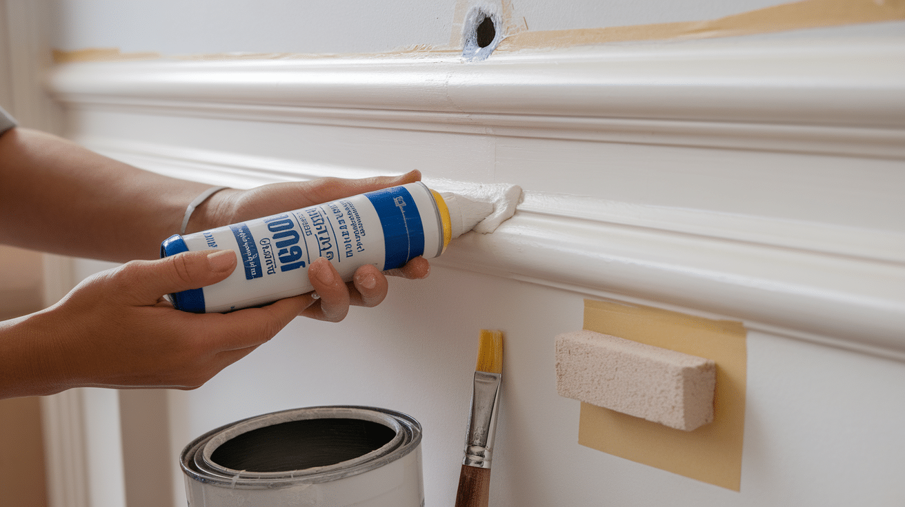 - Caulk: Fills small gaps or cracks between the wall and molding.