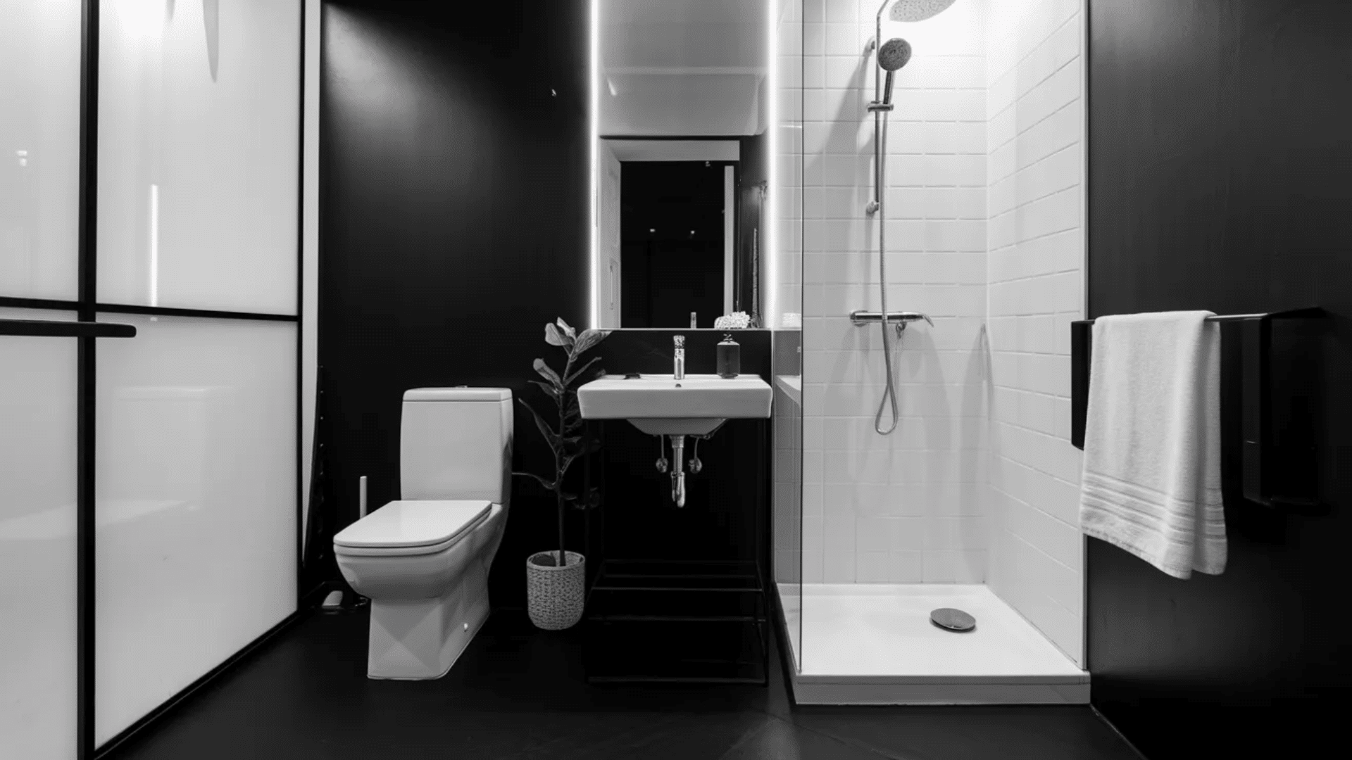 9. Minimalist Black and White Bathroom
