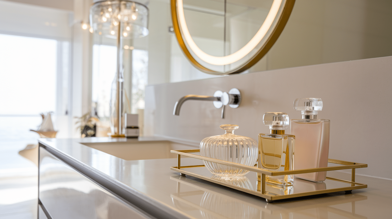 Mirrored trays, cups, or decor pieces can brighten up the bathroom. They reflect light, making the space feel larger and more open.