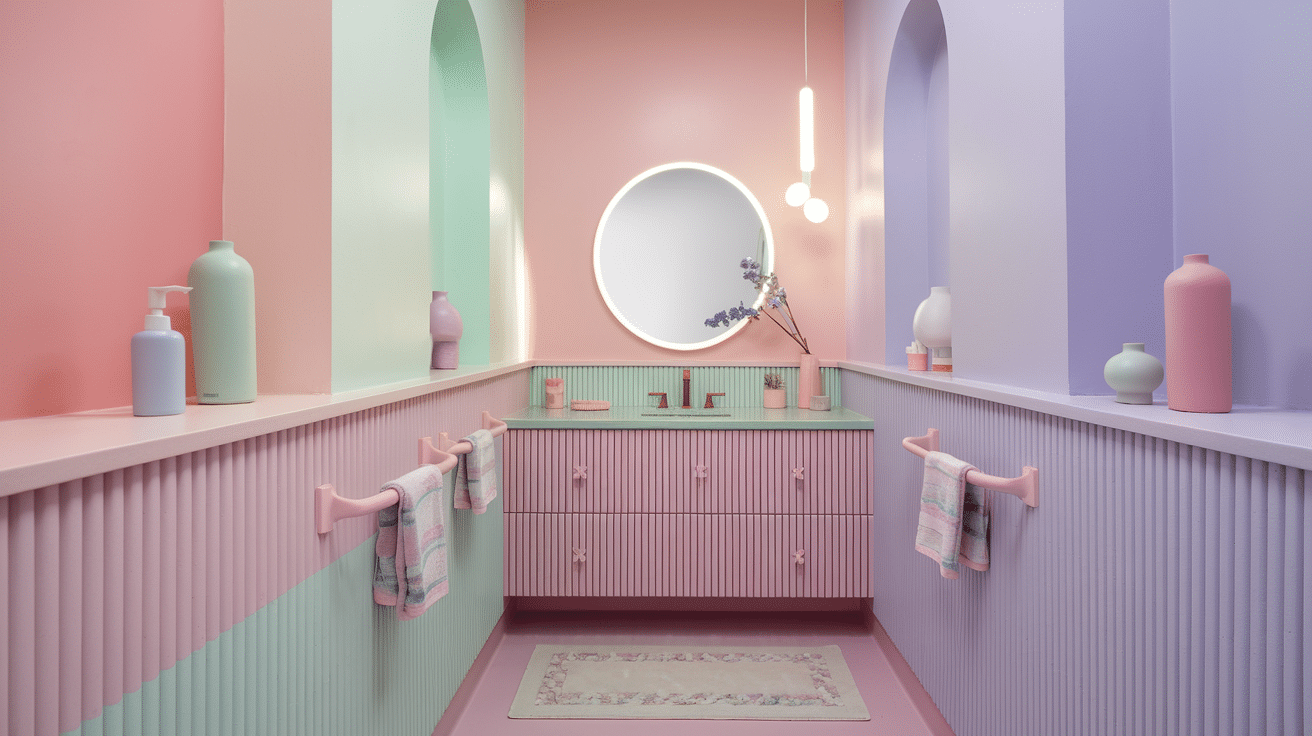 Soft pastel shades like pink, mint, and lavender give the bathroom a gentle, calming atmosphere. These colors work well in small spaces, making them feel more open and airy.