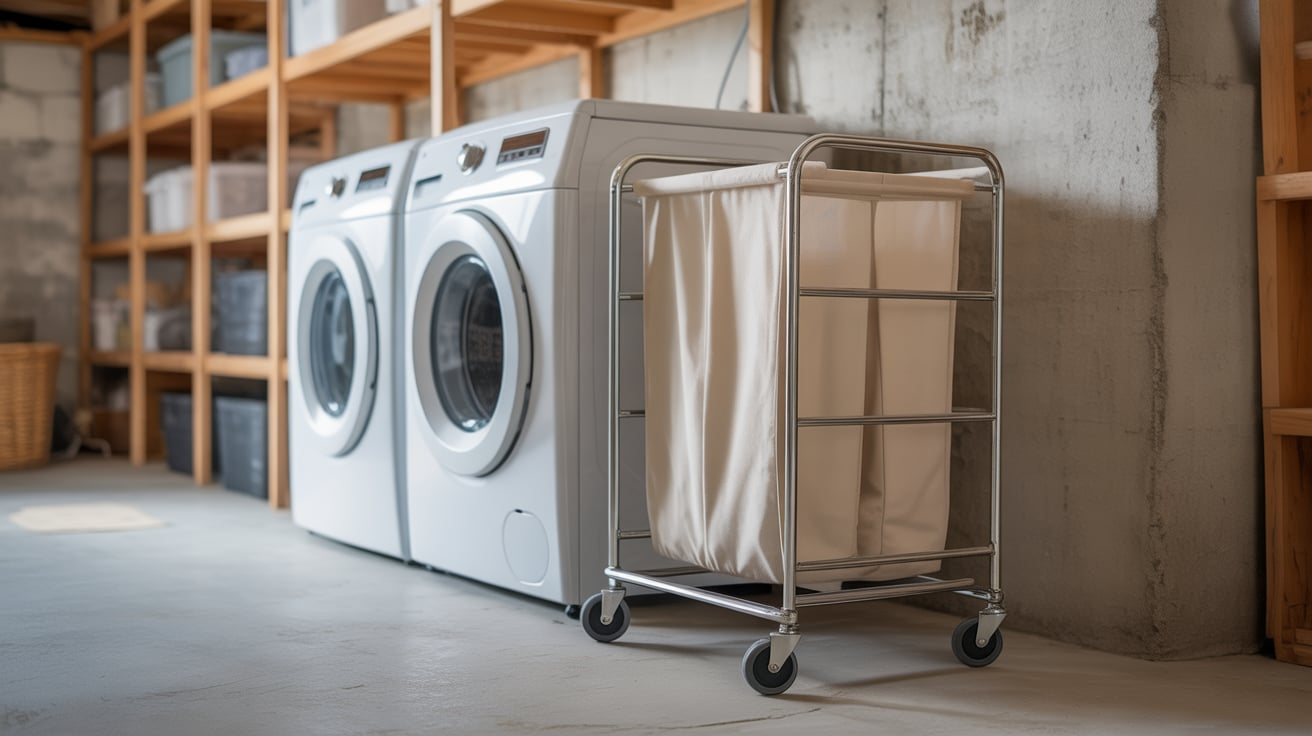 A laundry sorter cart is a rolling unit with separate sections for different types of laundry. You can label each section and sort clothes as you go, saving time on laundry day.