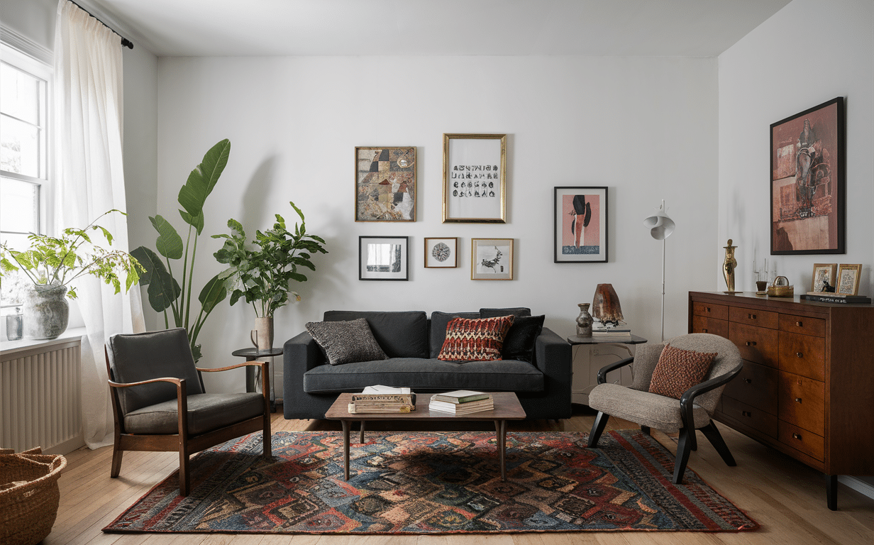 I start with simple, current furniture, then add character through accessories. A basic sofa becomes much more interesting when paired with unique pillows, throws, and small decorative objects. This approach makes it easier to change things up when I want a fresh look.